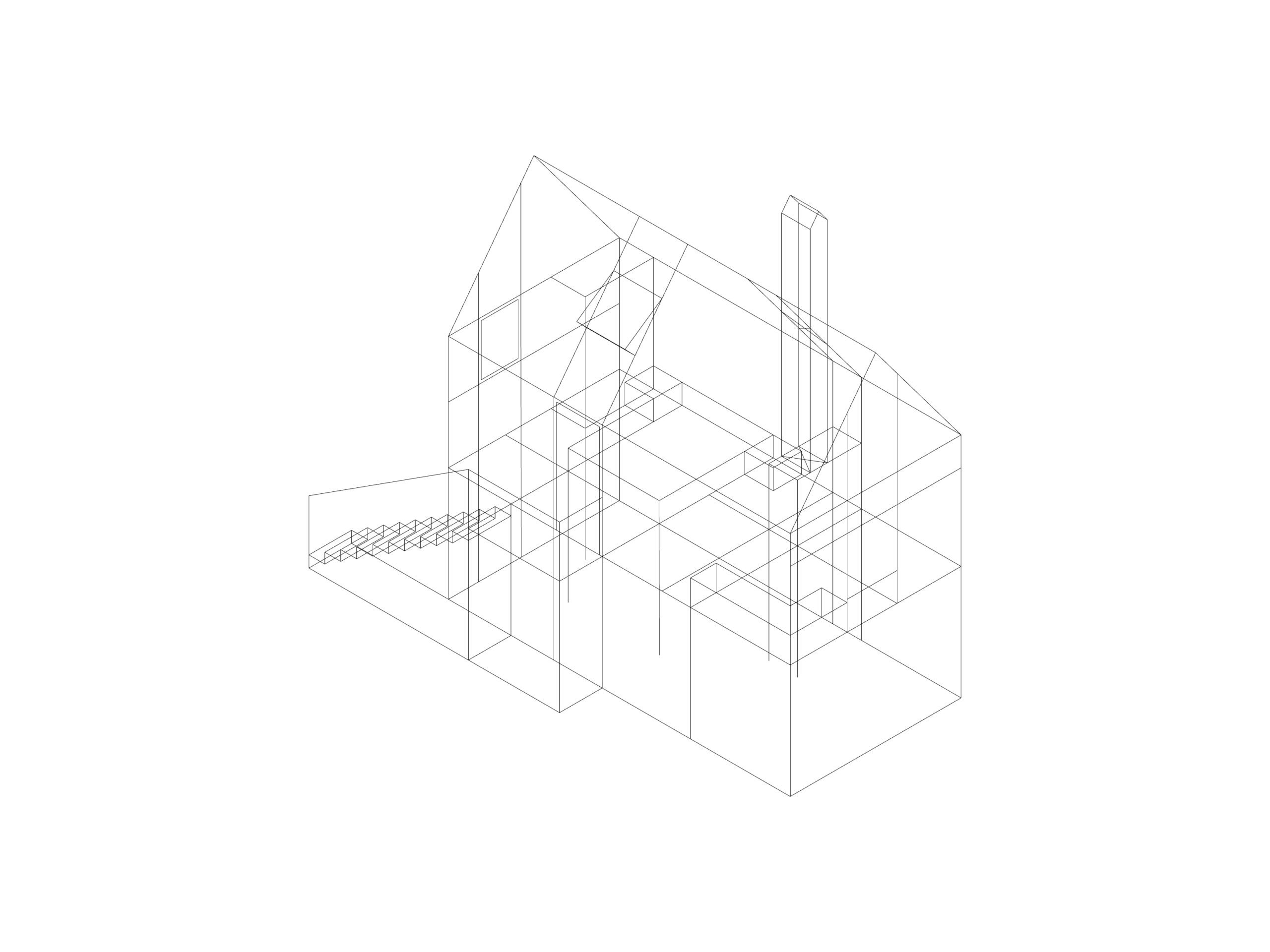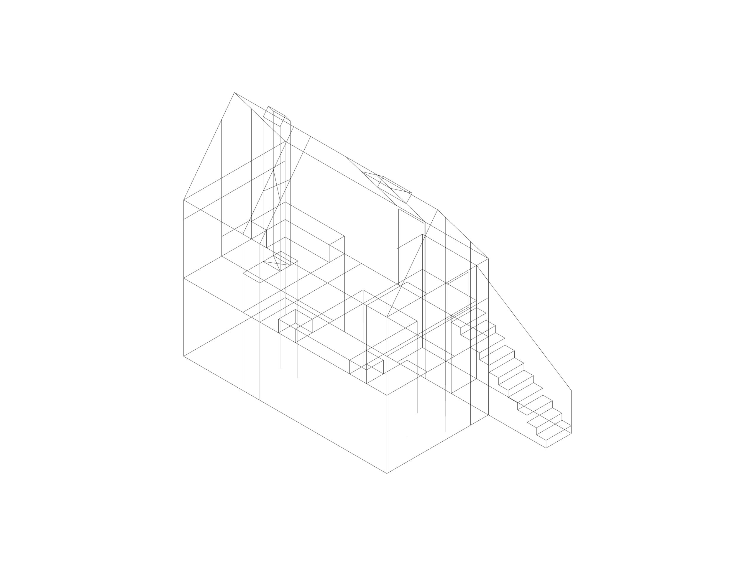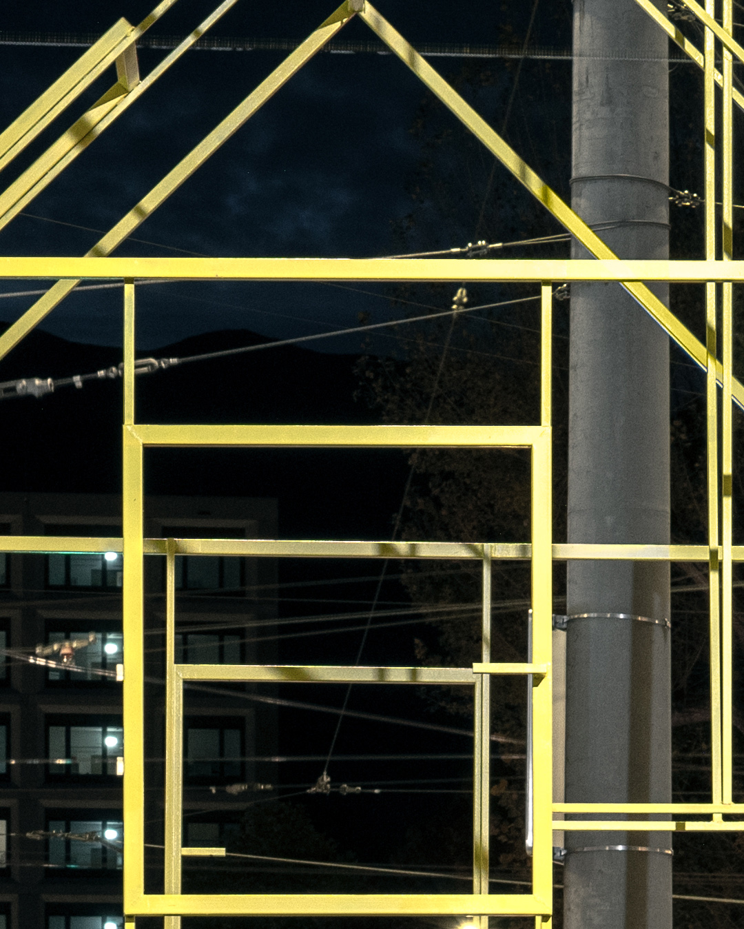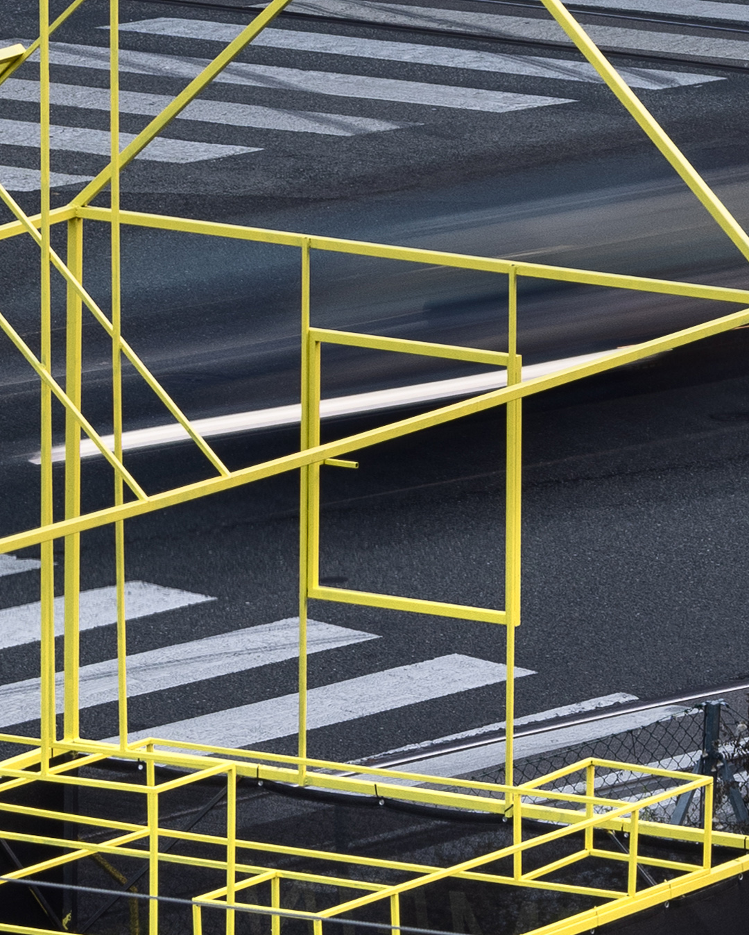 Das Thema wird nun in den öffentlichen Raum skizziert – die stählernen Linien lassen das Gebäude sichtbar werden, und doch ist es leer; da und doch nicht da.